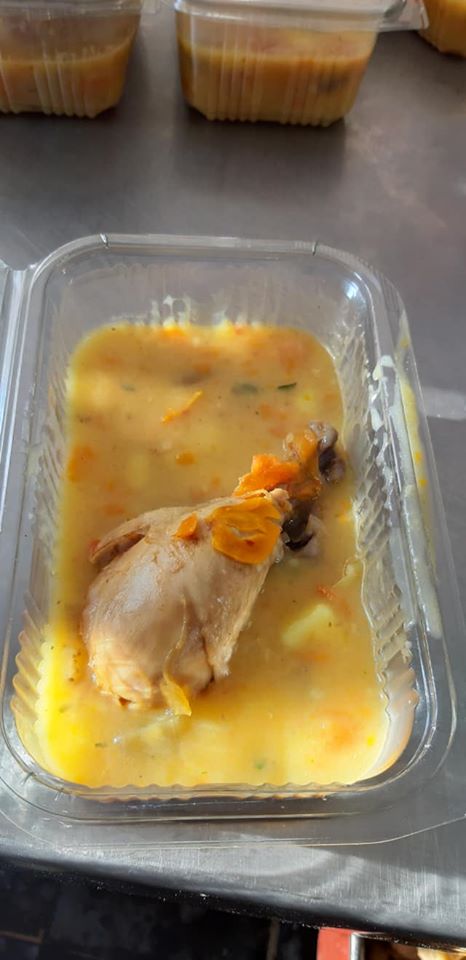 Multumim echipei care a gatit sambata pentru sarmani! Tocanita de cartofi cu pulpe, paine si fructe a fost meniul zilei!
